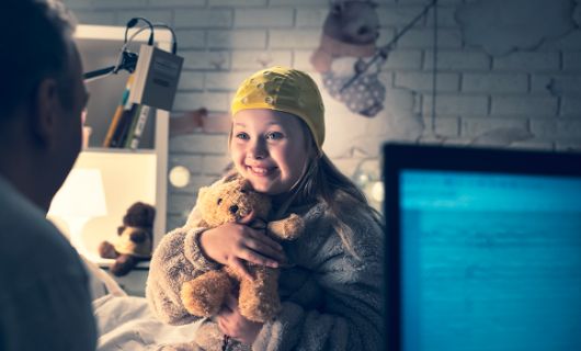 Badanie EEG jest całkowicie bezpieczne, bezbolesne i nieinwazyjne. Podczas badania Pacjent (osoba dorosła, dziecko) wygodnie siedzi lub leży, a na jego głowę zakładany jest specjalny czepek z elektrodami, które rejestrują aktywność elektryczną mózgu.